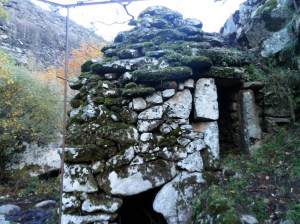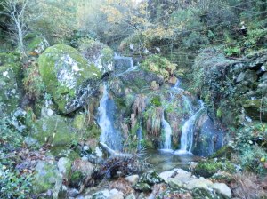 Vueltos a Sistelo nos adentramos en la ruta propiamente dicha subiendo hasta la Mámoa do Cotinho, un enclave funerario de hace cuatro o cinco mil años, para después de atravesar un hermoso bosque de coníferas y descender a una amplia explanada de tierra quemada, A Châ dos Fiais, que el fuego convirtió en un paraje desolador hasta llegar a la aldea de Cernadas y de allí a la Corga das Valoucas, un profunda garganta de espesa vegetación que atravesamos para llegar en poco menos de una hora a Merufe, la principal población de estos contornos, en cuyo restaurante Dias reponemos fuerzas a la vez que celebramos el nacimiento del primer nieto de nuestros amigos caminantes y compañeros de fatigas Carmen y Antonio.