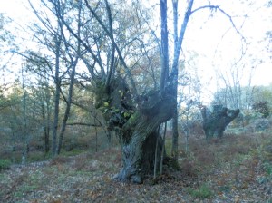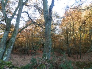 Efectivamente, existen los restos de dos de esas construcciones, reducidas hoy a los muros exteriores sin que se vea nada en su interior, pero lo que sí abundan de forma extraordinaria son los bosques de robles, las carballeiras por las cuales discurre casi la totalidad de nuestra caminata y que es la razón por la que hemos nombrado a esta ruta Roteiro das carballeiras.
