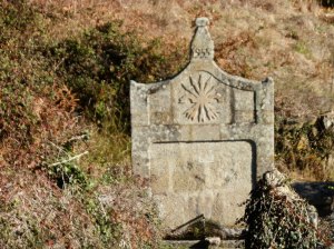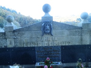 Un poco más adelante, al pasar por el pelamio número 2, más de lo mismo, nos desviamos del río para llegar, entre profundas congostras y hermosos senderos alfombrados por la hojarasca otoñal bajo la luz dorada que se filtra por las ramas de los carballos, a la aldea de Paciños y poco después a la de Requeixo de Valverde en donde nos detenemos para contemplar su monumental iglesia y su cementerio, de los que quedan pocos, pues está situado todo sobre el suelo, lápidas y algún que otro panteón de cierto porte, pero sin los nichos de hormigón que afean tan frecuentemente estos lugares.