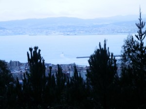 También esta sería una magnífica atalaya para disfrutar de las vistas pero los eucaliptos que la rodean no lo permiten aunque en un día como el de hoy la niebla y la lluvia no dejan ver nada.