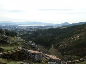 Después de empaparnos bien de tanta hermosura, seguimos por las alturas del monte de San Lourenzo hasta dar con un solitario paraje en el que se halla una mámoa, esos monumentos fúnebres de nuestros antepasados de hace unos milenios, A mámoa do Forno das Arcas, misteriosa denominación cuyo significado se escapa a nuestros conocimientos. Vecina a la mámoa se encuentra la Tumba do Portugués, unas cuantas piedras en círculo encabezadas por una pequeña lápida con una cruz. Otro misterioso monumento casi perdido en una hermosa carballeira.