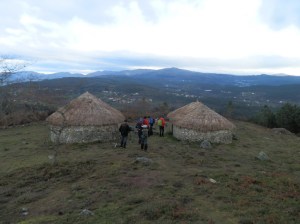 Desde ahí continuamos la marcha en subida continua a lo largo de unos 4 Km. hasta alcanzar el poblado fortificado de Cossourado. Aprovechamos para hacer la foto del grupo en lo alto de la colina en donde se alza un vértice geodésico desde el que se domina todo el valle del Miño, con las ciudades de Valença y Tui en la lejanía.