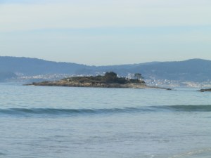 Seguimos por caminos y pistas forestales, siempre por las alturas, hasta llegar a la Cruz de Ermelo, muy conocida por estos senderistas. Se levanta sobre un altozano frente al mar oculto por los pinos que allí han crecido. A partir de este lugar, toca descender hasta la villa de Bueu en donde nos espera Casa Quintela con un rutinario menú del día que pasa sin pena ni gloria por nuestros estómagos cumpliendo la obligada misión de reponer fuerzas para permitirnos continuar la marcha por las hermosas playas de Agrelo y Lapamán en cuyo extremo se encuentra el punto final de la caminata en donde completamos una estupenda jornada con un tiempo casi primaveral.