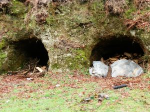 Sigue la ruta por caminos con frecuencia encharcados por la recientes lluvias, entre cierres de fincas y bosques que ocupan lo que en otros tiempos fueron tierras de labor hasta que llegamos a las estribaciones de A Cima da Granxa, unos parajes agrestes salpicados de penedos, grandes rocas redondas por las que serpentean estrechos caminitos entre sus paredes cubiertas de musgo en una especie de tobogán con rampas que suben y bajan hasta alcanzar A Cima, otro conjunto de penedos que constituye un excelente mirador de la comarca que rodea la ciudad de Ourense. Oculta entre ellos se encuentra A Cova da Cima, un espacio que sirvió para albergar pastores y transeúntes en tiempos ya pasados.