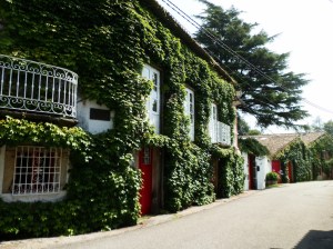 Continuamos por el sendero de pescadores disfrutando de la agradable sombra de la floresta ribereña, ahora que la niebla va dejando sitio a la luz y calor del sol hasta llegar al lugar de Valdemiñotos cuyo núcleo urbano hemos de cruzar bajo un sol que ya comienza a calentar sin sombra ni cobijo, pasando por sus extensos viñedos, también a pleno sol, hasta que nos reencontramos con las casas de Tabagón, muy floridas y de gran porte muchas de ellas, amparándonos en la sombra de sus estrechas calles.