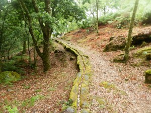 A continuación bajamos por la preciosa Senda botánica que discurre casi en su totalidad paralela a una larguísima y estrecha canalización de piedra que discurre entre acebos, sauces, alcornoques, brezo, madroños y muchas otras especies florales y arbóreas brillantes por la lluvia que caía mansamente resaltando su hermosura.