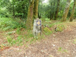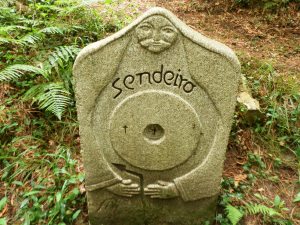 Después de tan agradable refección recogemos los bártulos del oficio y reemprendemos la marcha bajo la persistente lluvia dejando atrás las ultimas calles de ciudad para desviarnos por San Bartolomé al puente romano sobre el Louro por cuya margen izquierda caminamos los primeros cinco kilómetros hasta dar con el su afluente, el San Simón, que es el que nos lleva a lo largo de deliciosos parajes, bajo la luz oscura de sus frondosa arboleda hasta Santa Comba de Ribadelouro, inicio y fin de la lluviosa y entretenida jornada de este lunes.