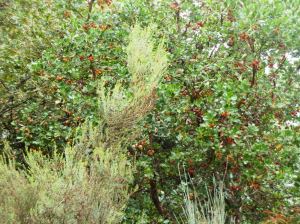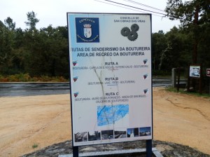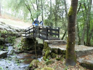 Los primeros kilómetros discurren a lo largo de este río totalmente rianxeiro, pues nace y muere dentro del municipio. Aunque el estiaje persiste y aún no han comenzado las lluvias, el río mantiene un caudal escaso pero suficiente para ver reflejada en sus aguas la frondosa arboleda que lo acompaña hasta el lugar de Foxaco en donde abandonamos el río para acometer las pistas forestales que nos llevan, entre pinos y eucaliptos y alguna que otra carballeira, hasta el centro de la villa, sin apenas desniveles, lo que hace de la caminata un paseo agradable y exento de esfuerzo en este verano-otoño, «veroño», que de momento no nos abandona en contraste con los tremendos temporales que asolan el este y sur de la península.