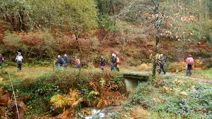 Continúa la caminata post meridiem por las orillas de O Rego Santo Tomé que toma el nombre de A Baralla cruzando el delicioso y breve valle en el que se asienta O Mosteiro, capital del municipio de Meis, el más extenso y menos poblado del Salnés, para llegar al lugar de Lois en donde es conocido como el río Cañón.