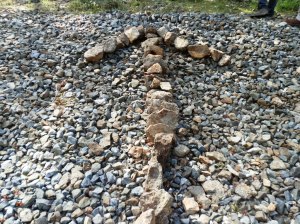 Allí, junto a la iglesia de San Esteban de Cabeiras, pegadita al Mesón, iniciamos la jornada. Caminando entre pinares y fincas durante unos cinco km. alcanzamos el merendero de Sela, una zona de esparcimiento en la orilla del Miño. El ancho río que fluye pletórico entre la orilla lusitana y la española discurre jalonado por las milenarias pesqueiras entre cuyos poyos son atrapadas con el arte del viturón, una nasa trampa que sujetada con cadenas al muro que se adentra en la corriente las engulle sin posibilidad de escape.