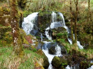 Ondulantes lenguas de espuma se deslizan entre las pulidas rocas, a veces por estrechas gargantas, otras despeñándose por las enormes lajas cubiertas de musgo y vegetación bajo el sordo fragor que inunda la floresta ribereña.