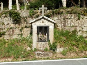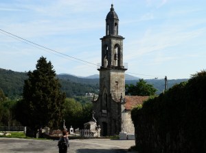 Llegados a Santiago de Achas hacemos un breve descanso a la sombra de los carballos de O Feirón, contiguo al pazo del Conde de Cervellón y muy cerca de su notable iglesia parroquial para seguir durante tres kilómetros por la carretera que nos lleva hasta el Muiño de Erendo en el río Oulo y de allí al ya citado Sobreiral de San Martiño, un espléndido bosque de alcornoques de los pocos que se encuentran en Galicia.