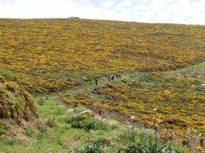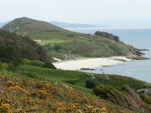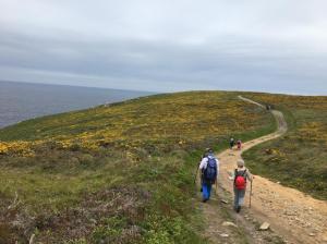 Los chicos y chicas de Los Lunes al Sol hemos iniciado desde allí nuestra caminata recorriendo las pistas forestales que cruzan los montes aledaños hasta alcanzar el Miradoiro do Castro, una atalaya sobre los valles que lo rodean de este a oeste con la ría de Vigo como telón de fondo.