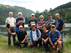 Allí nos esperan unas tripas con fabas y un bacalao con patatas panaderas, todo de estilo portugués, como la joven mesonera que nos atiende acompañado tan excelente condumio con un rioja Azpilicueta con el que nuestro Antón celebra su cumpleaños por el que todos brindamos con entusiasmo deseándole larga vida a tan eximio senderista y querido compañero de fatigas que en esta jornada han sido pocas pues la caminata fue suave sin exigir grandes esfuerzos.