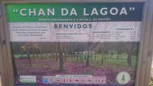Lo que hace unos pocos años era un frondoso pinar fue transformado por los incendios en un descampado amarillento. Llega en descuidado camino hasta la carretera para, después de un corto tramo por carretera, retomar a la altura del lugar de San Antón las pistas forestales que nos llevan hasta Baredo y desde allí, monte arriba, siempre entre pinares, hasta el área recreativa de Chan da Lagoa en donde hacemos una parada para tomar el refrigerio de las once y continuar hasta la mentada aldea de San Cosme.