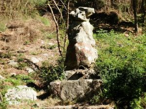 Menos mal que poco antes de llegar al punto final nos topamos con una fuente de agua fresca y cantarina en la que nos refrescamos por dentro y por fuera aliviando calor y cansancio y permitiéndonos rematar la jornada sin agobios.