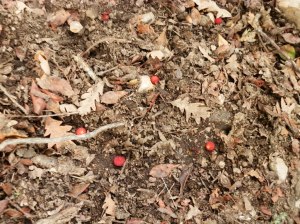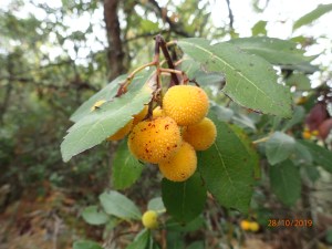 La ruta de este lunes  discurre en gran parte por A Senda de A Boutureira, un bonito sendero que discurre durante varios kilómetros entre madroños que en esta época del año están rebosantes del rojo y brillante fruto que destaca como oscuros rubíes entre la hojarasca que cubre el camino.