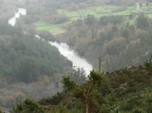 Allí reponemos fuerzas con una austera colación a base de sopa y pollo con patatas para bajar de nuevo al río hasta el lugar en donde se yergue el antiguo balneario en cuyas cercanías se encuentra el mirador de Coto da Pena una estratégica atalaya desde donde se contempla una hermosa panorámica del ancho río.