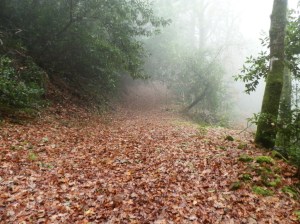 Las tranquilas aguas de la presa que se entreven a través de la fronda acompañan al caminante durante todo el tiempo mientras sube y baja por el largo tobogán que forman en el monte continuas subidas y bajadas de escasa pendiente y frecuentemente dotadas de escaleras y pasarelas.