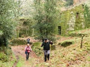 Nos topamos en medio de la floresta con la aldea abandonada de A Barca citada más arriba. Paredes y balaustradas de las antiguas construcciones dan fe de la importancia del lugar de gran actividad mercantil y social en tiempos pasados.
