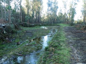 La primera vez que hicimos esta ruta acababa de ser inaugurada por la autoridades locales y provinciales con el nombre de Roteiro polo patrimonio de Pontesampaio. Cuando la repetimos dos años después observamos cierto deterioro debido a la falta de mantenimiento pero en las siguientes ocasiones el abandono se había apoderado del sendero haciéndolo impracticable en algunos tramos.