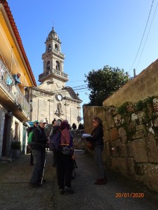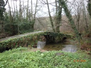 Después de tomar el tentempié de las once, discurrimos por una zona planoconvexa que sirve de divisoria de aguas entre las cuencas del Tambre (al Norte) y del Ulla (al Sur). Enseguida llegamos a la orilla del Sarela, que todavía es un río juvenil de metro y medio de ancho, y ya no lo dejaremos hasta prácticamente el final de la ruta.