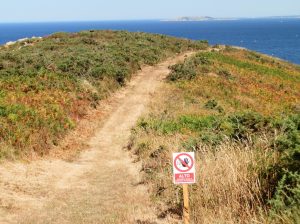 Después de tan  copioso y suculento ágape emprendemos la  marcha por los caminos y vericuetos de la isla, pasando por la playa de Melide, caminando hasta el faro, siempre rodeados del intenso azul de un mar en calma y acompañados por una vigorosa brisa que mitiga los rigores del fuerte sol de este lunes de julio. Ya estamos en plena temporada veraniega por lo que nos cruzamos con bastante visitantes aunque en menos cantidad que la habitual debido a la actual situación de emergencia sanitaria.
