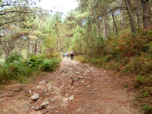 Seguimos por la pista que bordea la costa hasta llegar al centro urbano de A Guarda el cual atravesamos para adentrarnos en las fincas que rodean la villa pasando por los lugares de A Longa y O Aloqueiro hasta cruzar la PO 355 por la pista que asciende al monte y enlaza con O Camiño das 14 voltas, un enrevesado tramo por el que accedemos a la cima en donde se encuentra el hotel, los chiringuitos de suvenirs y el aparcamiento.