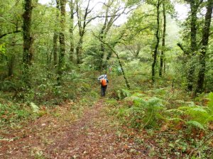 En Puente Bora vadeamos el río y nos vamos a la carretera que después de unos cientos de metros atravesamos para entrar en los bosques que albergan el río Almofrei, afluente del río grande al que entregará su caudal bajo el puente que acabamos de abandonar.