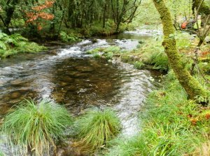 Entre esa sinfonía de colores, desde el intenso verde del musgo que cubre muros, árboles y rocas hasta el ocre de la hojarasca que cubre los estrechos caminitos que bordean el río, seguimos nuestro camino hasta que éste se acaba pasa ser continuado por las poldras o pasos de piedra que habrá que vadear para cruzar al otro lado. El problema es que algunos de esos pasos han desaparecido y, aunque el río va bajo de caudal, aún lleva agua y es fácil resbalar sobre las piedras mojadas, así que toca descalzarse y tratar de pasar al otro lado sin darse un remojón aunque algunos más atrevidos lo hacen con las botas puestas.