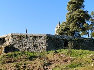 Dejando atrás A Peneda, seguimos entre fincas y pinares hasta dar con la ermita de San Caetano en en el punto más alto de la finca del Castillo de Soutomaior, no lejos de la localidad de Moreira, un pacífico conjunto de unas cuantas casas esparcidas entre verdes praderas cuya hierva brilla bajo el claro sol del mediodía.