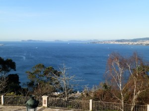 Y así lo hice esta mañana por los aledaños del monte de A Guía. Parte la ruta de la ermita de Nª Sª de La Guía, obra de Manuel Gómez Román, edificada en 1951 sobre los restos de un primitivo castro. Bajo por el bosque que rodea la ermita hasta Punta Lagoa y desde allí sigo hasta la playa de La Punta siempre al borde de las tranquilas aguas de la ría con el puente de Rande al fondo.