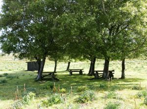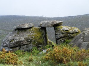 Ya en plena sierra seguimos por el sendero que pasa por  A Porta da Vila, una par de columnas con su dintel, no sé si hecho de forma natural o  construído por la mano del hombre. Sigue el camino rodeando  el Outeiro do Homen en el altiplano por donde se extiende O Châ Grande, una amplia explanada por la que se mueve una manada de caballos garranos totalmente ajenos a nuestra presencia.