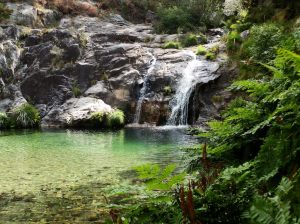 Un kilómetro más y damos con las Pozas de Mougás, un encantador paraje en el que río homónimo forma otra hermosa cascada, algo menguada en estos inicios del verano pero aún con nivel suficiente para que Antón y Torres naden unos largos en sus aguas tranquilas y transparentes.