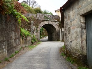 Pasado el curro todo es bajar, descendiendo hasta el lugar de Peitieiros hasta Os Muiños do Novo, ya en las orillas del río Miñor, escaso de aguas en estos días de verano pero adornado por la verde frondosidad de su vegetación riberana.