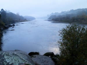 Aunque a primera hora de la mañana el cielo estaba cubierto y llovía mansamente no tardamos en cerrar los paraguas. No volvimos a abrirlos hasta llegar al restaurante por lo que pudimos disfrutar plácidamente del largo paseo por las riberas de los tres ríos que circundan Salvaterra de Miño.