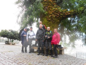 A ratos, también pudimos dejar nuestra huella en suelos más auténticos: tierra, barro, hierba… Y otras veces, por tramos adoquinados, pavimento que siempre encontramos ordenado y elegante, por lo regular de su forma, pero que en días tan húmedos resulta peligroso, sobre todo en cuesta.