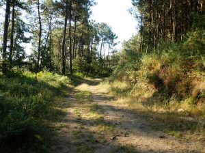 Después de disfrutar de las magníficas vistas sobre el valle, seguimos por pistas forestales, casi siempre bajo la benéfica sombra de sus pinares y siguiendo el menguado cauce de O Rego da Fábrica, hasta el enclave denominado Auga de Estás. en cuyo interior se encuentra el área recreativa de O Delirio do Poderoso.