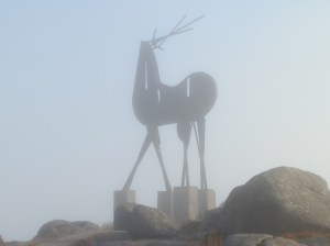 Fue una buena pateada. Iniciamos la jornada en el bario vilanovense de A Calçada da Serra no tardando en alcanzar el parque y capilla de Nª Sª Da Assunçao, muy cerca del Miradoiro do Cervo con la figura del ciervo dominando todo el valle de Vilanova de Cerveira oculto a nuestros ojos por la densa niebla que nos acompañó durante buena parte de la mañana.