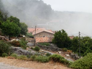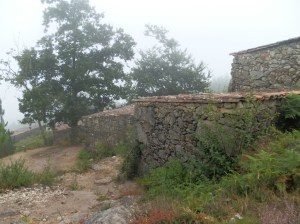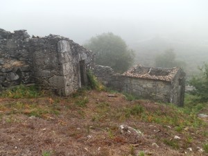 Cuando llegamos a los Muiños do Picón, a unos 2 km. del bario das Cruces en O Rosal, una densa niebla cubría la zona convirtiendo en sombras las famosas casetas de piedra que en tiempos ya idos albergaban sus famosos muiños.