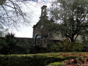 Desde allí iniciamos la caminata que, sin grandes apuros, nos lleva a la cercana localidad de O Viso en la que abandonamos el asfalto para, caminando por las pistas forestales que nos llevan ora entre pinares, ora por monte bajo sembrado de espesa hierba, llegar hasta Moreiras, muy cerca del Castillo de Soutomaior, a cuya finca accedemos escalando el muro por la parte que rodea a la capilla de San Caetano, ya que la puerta que da entrada a la ermita está cerrada con llave. Parece que solo se abre el día de la festividad del santo, en agosto.
