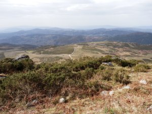 Hasta allí hemos llegado siguiendo, casi en su totalidad, el Roteiro da Escuadra PR-G 135, iniciando la caminata en el lugar de Barbeira, en continuo ascenso por monte bajo, sin apenas arboleda, hasta el punto más alto en la Cruz do Seixo en donde tomamos el camino de vuelta, muy parecido al de ida pero pero cuesta abajo.