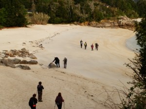 Como el tiempo está templado y apenas ha caído una ligera llovizna, la caminata discurre plácidamente por terreno llano sin cuestas relevantes lo que hace de la marcha un cómodo paseo por estas tierras con mucha vaca y mucha hierba.