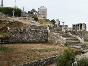 Una vez que llegas a la cumbre del monte de Santa Tegra, en castellano Santa Tecla, patrona de los pianistas nos decían de niños, después de contemplar la impresionante estampa del río Miño entregando su caudal al océano,  se inicia el camino de descenso hacia O Castrexo das Chans por un retorcido sendero al que le han puesto el nombre de Camiño das 14 revoltas, pues 14 son, por lo menos, las curvas poe las que hay que  moverse para llegar al citado lugar de Castrexo, antiguo enclave neolítico en el que un Centro de Interpretación explica a los visitantes las características del sitio, también merendero, en el que los castaños han abierto sus erizos lo cual nos permite disfrutar de los primeros frutos  de la temporada.