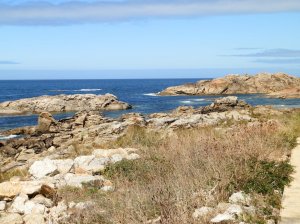 Arranca la ruta desde la playa del Codesal, al lado del hotel, para seguir  hacia Camposancos y desde allí, más o menos desde la plaza de San Amaro, iniciar la subida al mítico monte, lugar sagrado tanto para los antiguos como para los de hoy, ya que aquí se celebra en este mes de agosto la celebérrima Festa do  Monte en la que nos romeros acaban con su vestimenta del color del vino tinto que  se vierte raudales por las gargantas y camisetas de los que hasta allí acuden.