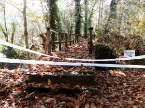 Gran parte de la ruta discurre por las riberas de los tres ríos, por puentes y pasarelas, alguna de las cuales quedó intransitable por los destrozos de los pasados temporales.