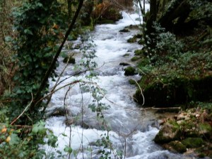 Mucho frío y algo de niebla aceleraron nuestros pasos para entrar en calor, de manera que no tardamos mucho en recorrer los casi 17 Km., en su mayoría por la vera del río, pasando también por frondosos pinares adornados con el fuerte ocre de los helechos y el verde de las extensas plantaciones de kiwis que abundan por estos lares.