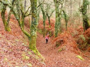 Y así fue mientras bordeábamos las riberas de los ríos Refusio y Verdego, por sus senderos cubiertos de la brillante hojarasca de ocre oscuro reluciente bajo la lluvia, entre el exultante e intenso verde del musgo que cubría las rocas y penedos que jalonan sus caminos.