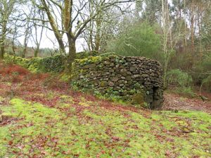 Durante casi 13 Km. recorremos pinares y monte raso así como alguna carballeira hasta llegar al Foxo do Lobo, en Paraños, que cuando fue restaurado hace unos años lucía como nuevo pero que ahora, cubierto de musgos y oscura su mampostería, tiene el aspecto de una de aquellas antiguas trampas que los vecinos construían para atrapar al lobo.
