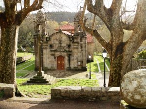 Esa espina dorsal la forman las sierras de A Madalena y O Nacente, a las que accedemos desde el atrio de la iglesia de Santa María de Darbo, uno de los mejores ejemplos del barroco rural que se pueden contemplar en Galicia.